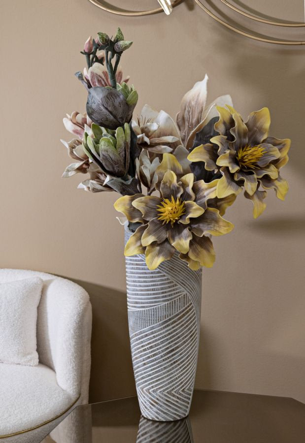 Resin Vase with Wood-Effect Carving – Modern Organic Style