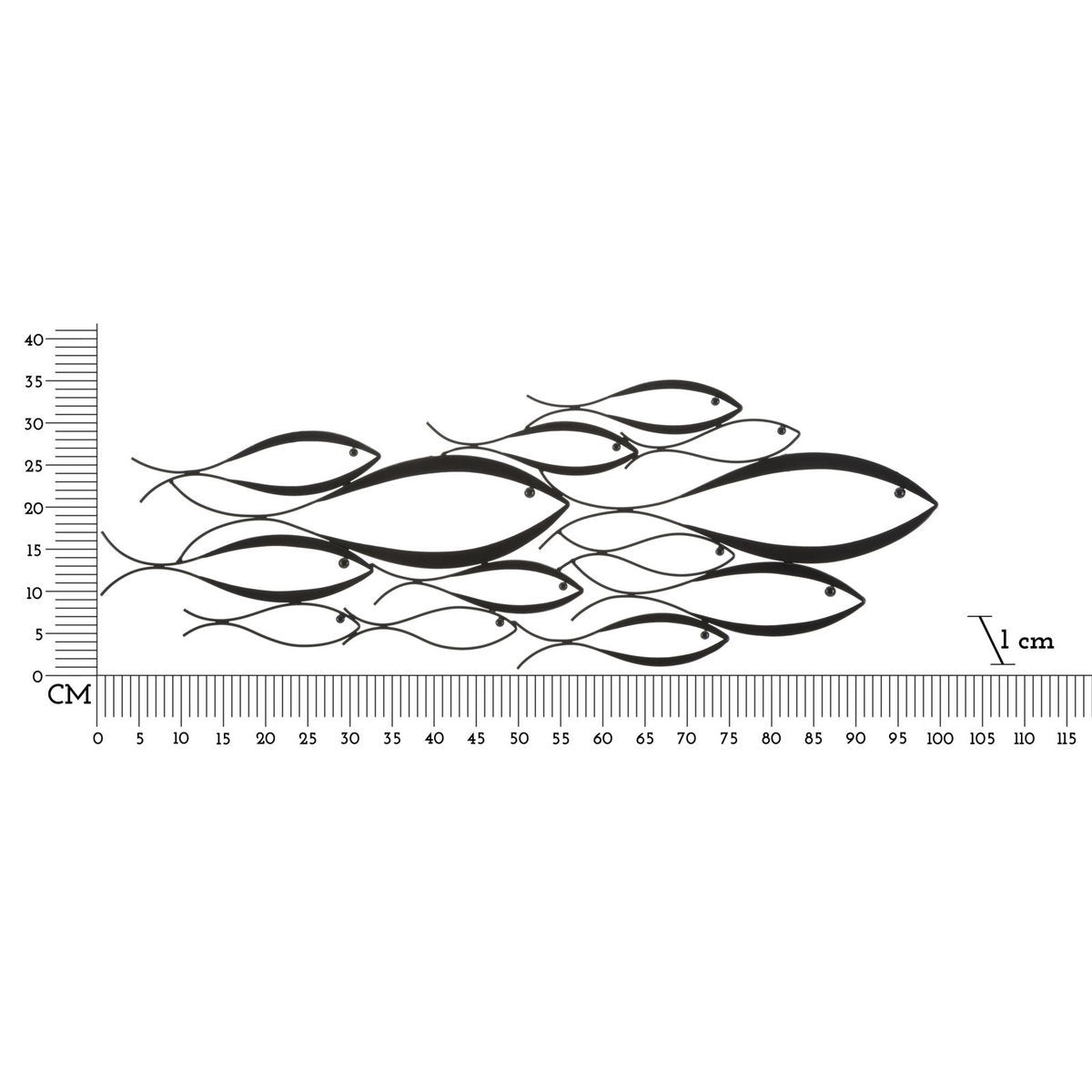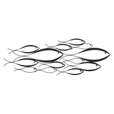 Schwarzes Metall-3D-Panel – Stilisierte Fischkomposition