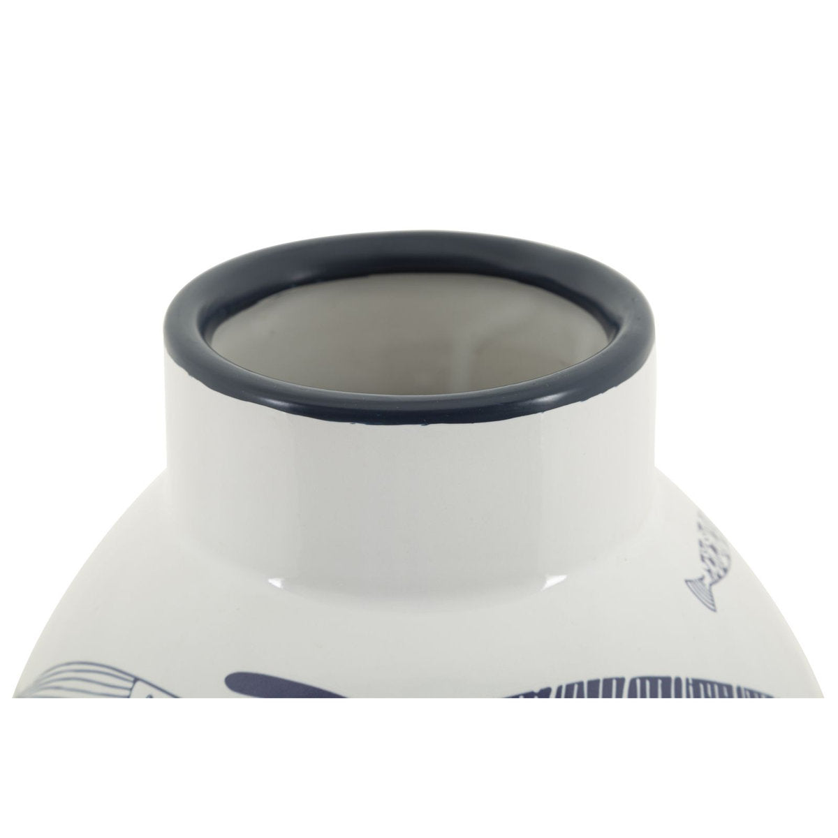 White Ceramic Sea-Themed Vase with Fish & Blue Motifs