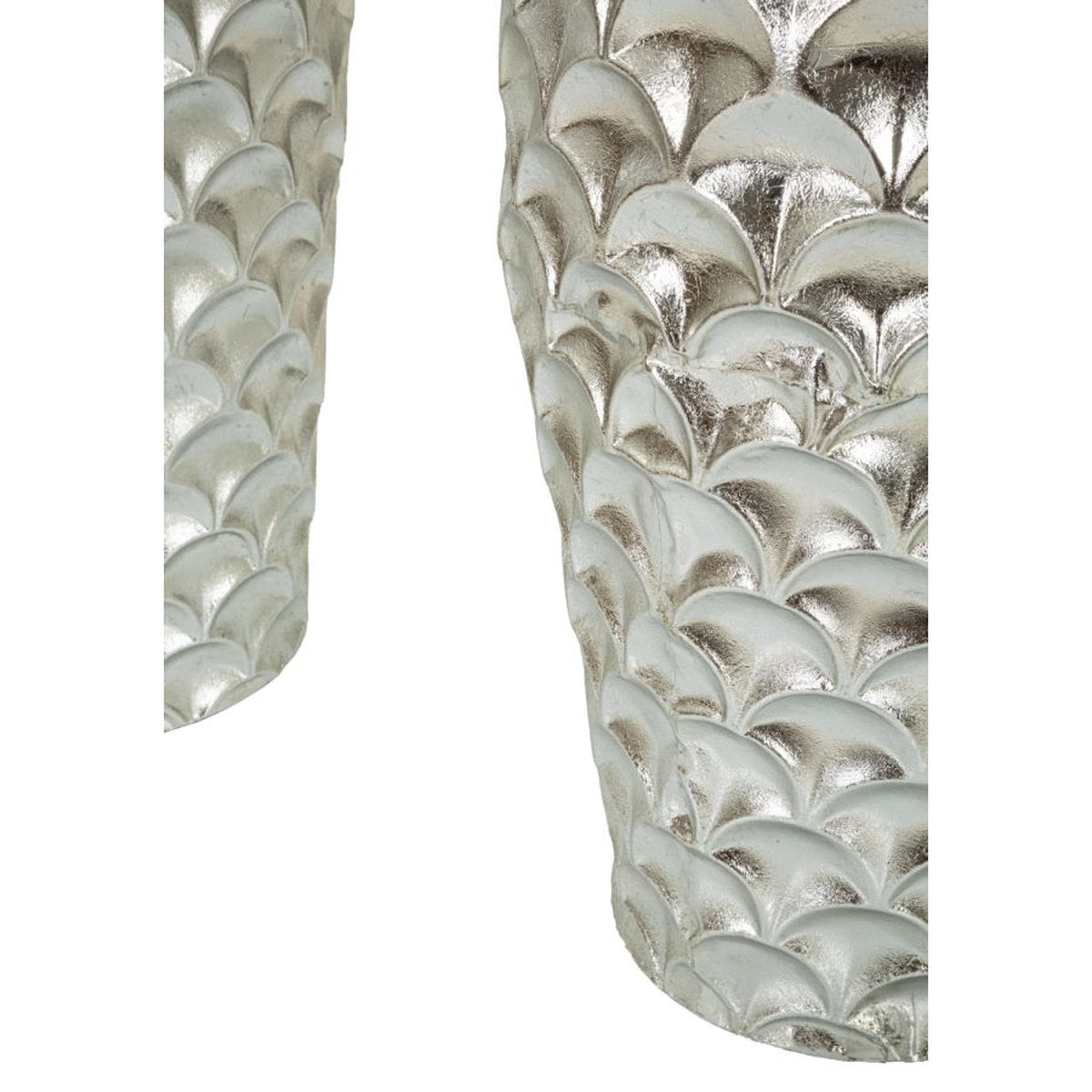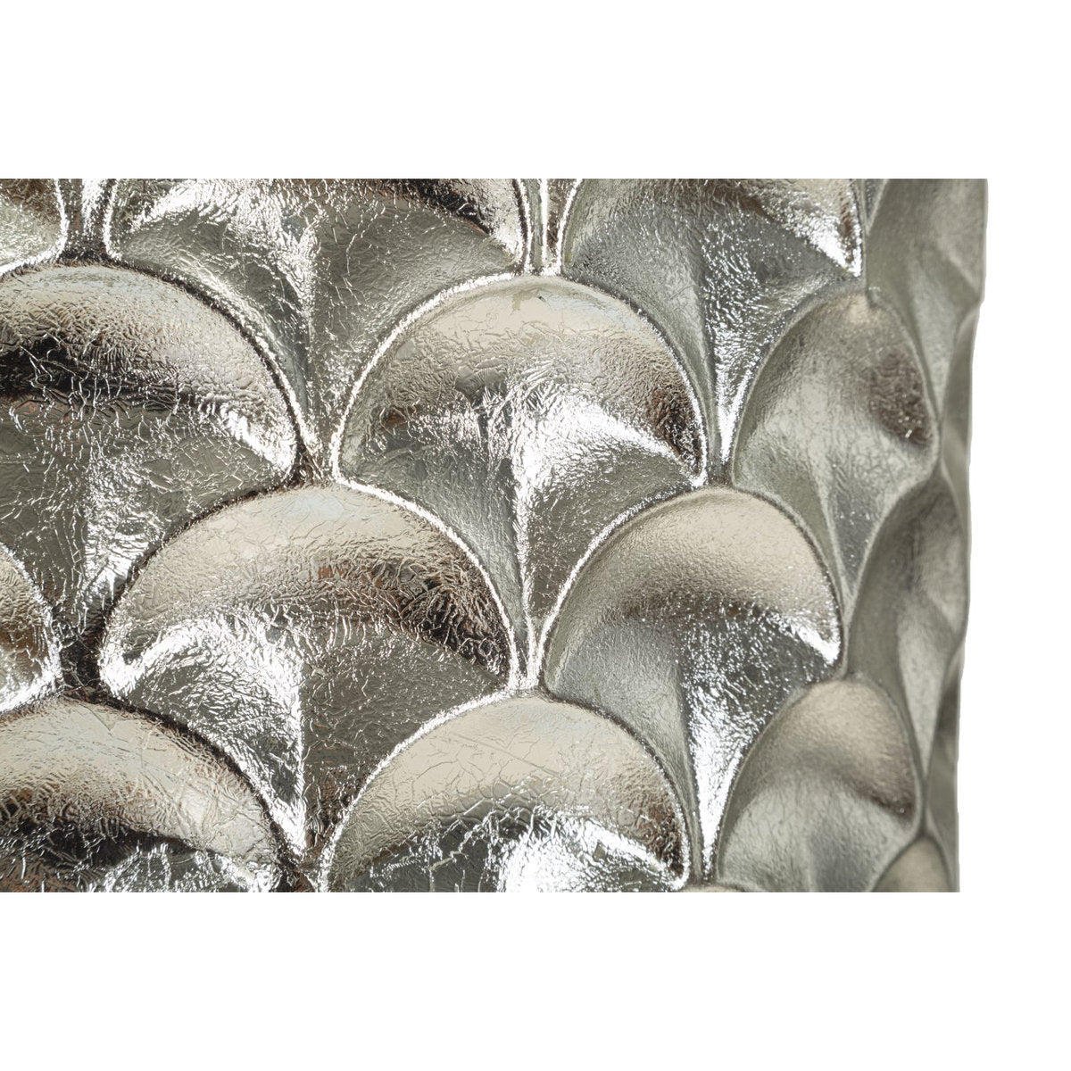Set of 2 Silver Metal Round Vases with Irregular Relief