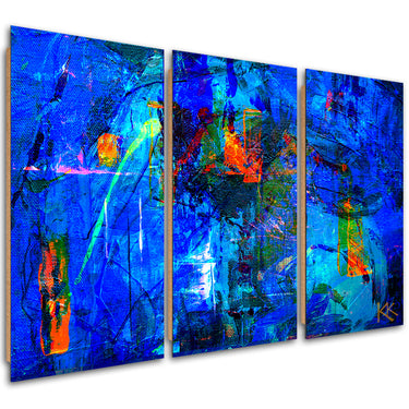 Three piece picture deco panel, Blue abstract hand painted