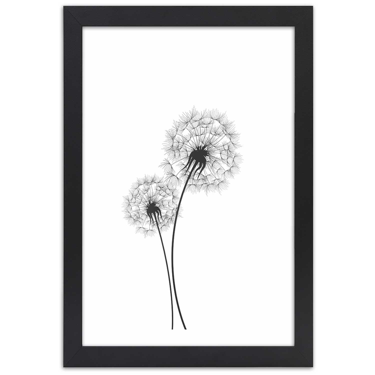 Bild in schwarzem Rahmen, gezeichnete zwei Löwenzahnblüten