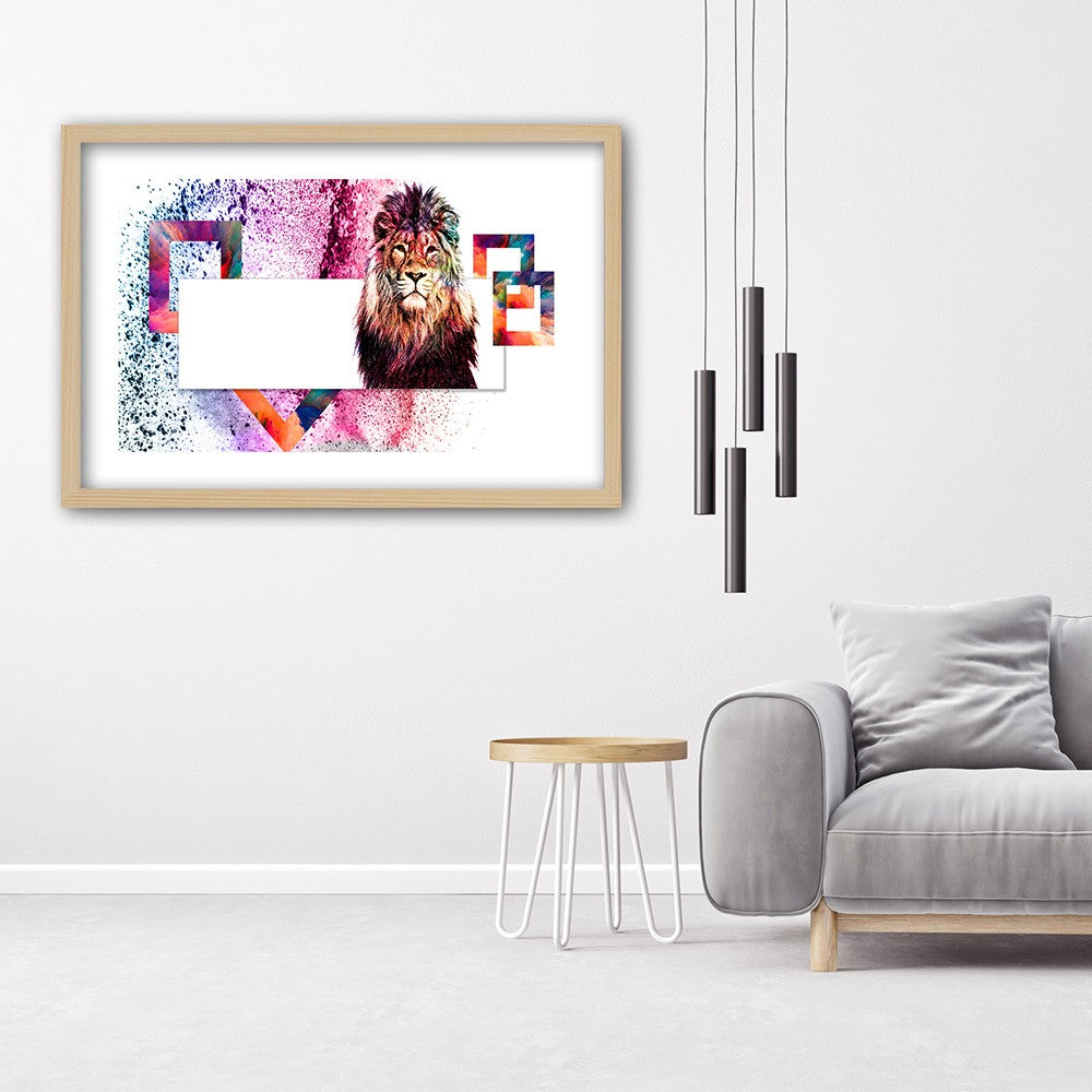 Bild im natürlichen Rahmen, Löwe mit farbenprächtiger Mähne