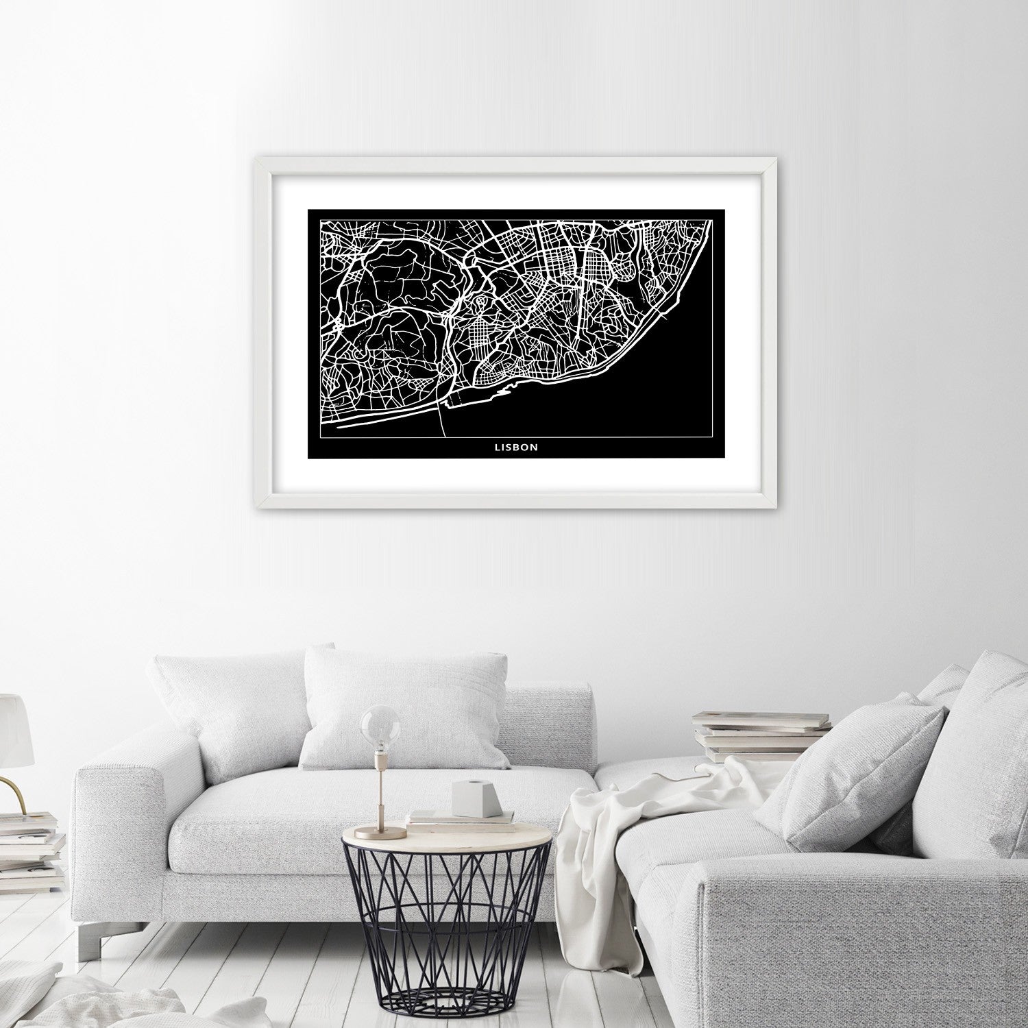 Bild im weißen Rahmen, Stadtplan Lissabon