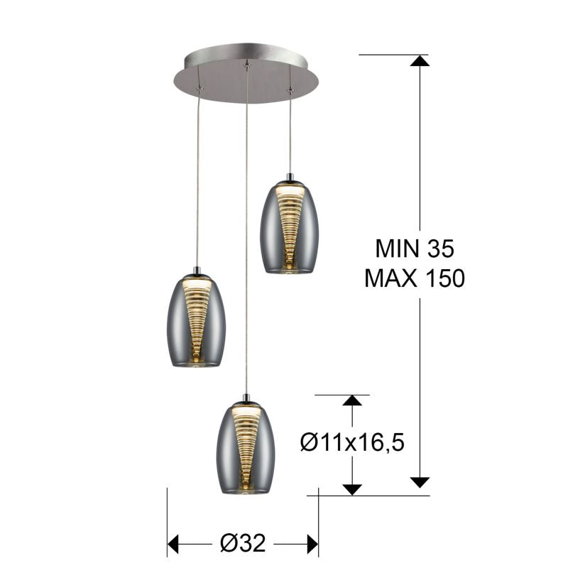 Pendelleuchte Schuller NEBULA 3L D 32cm, Chrom LED