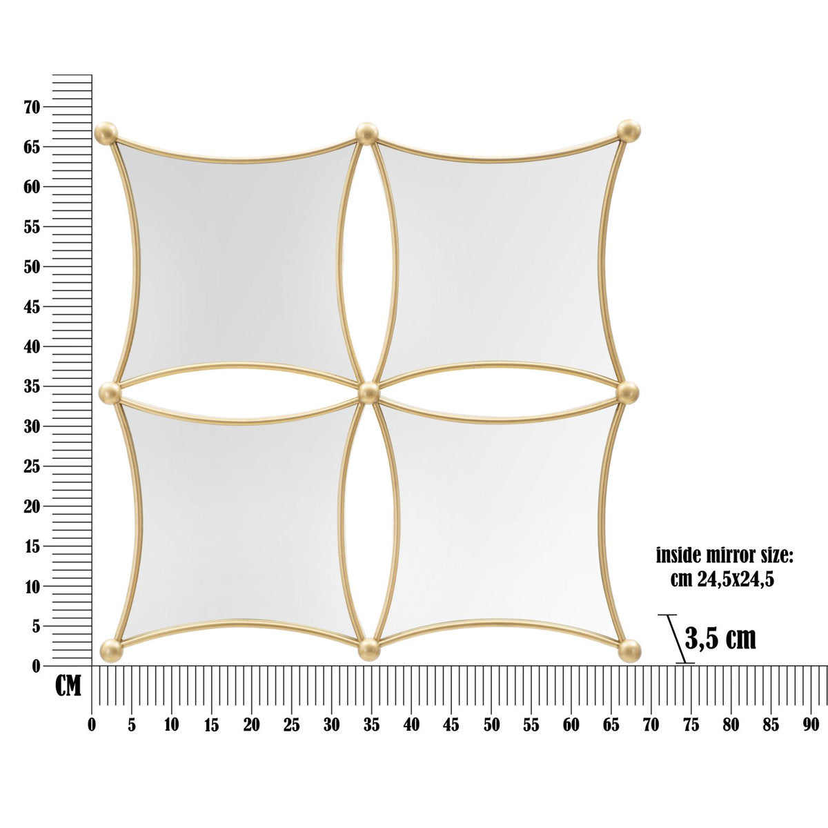 Geometrisches Wandspiegelpaneel mit eleganten goldenen Rahmen – 4er-Set