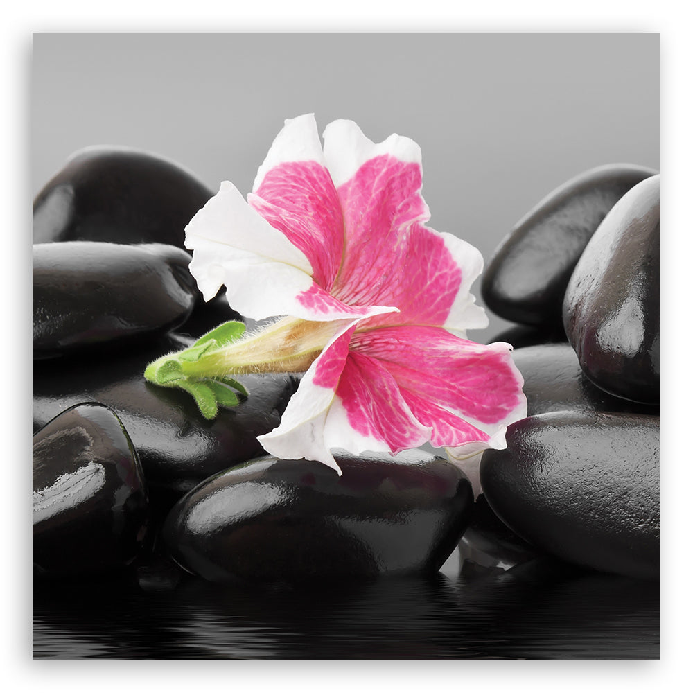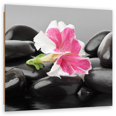 Dekorativer Paneeldruck, rosa Blume auf Zen-Steinen