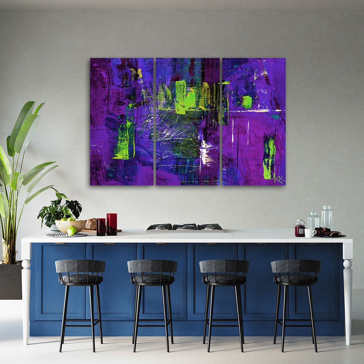 Three piece picture canvas print, Violet abstract hand painted