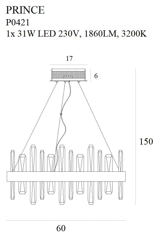 Maxlight Prince 1L Kronleuchter, Kristall, Durchmesser 60 cm