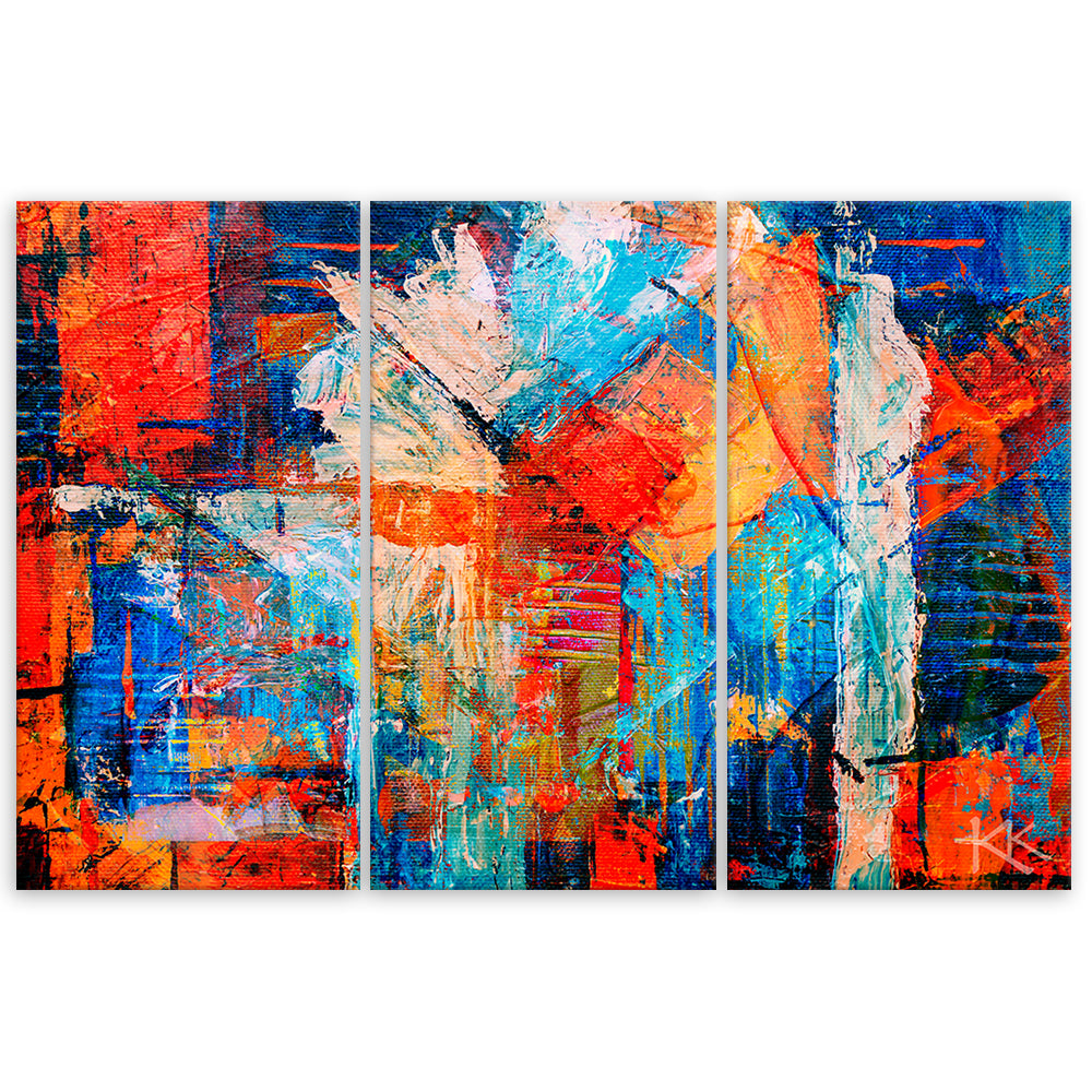 Dreiteiliger Leinwanddruck, abstraktes orangefarbenes handgemaltes Motiv
