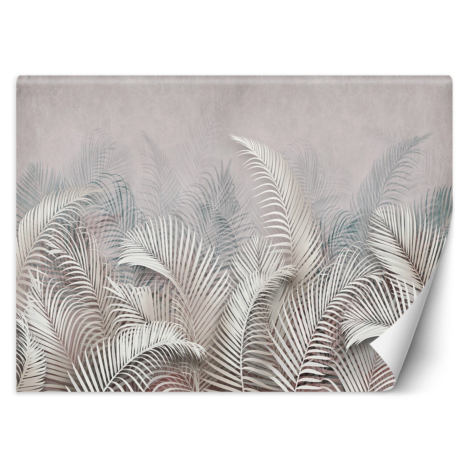 Tapete, Palmenblätter, Betongrau, 3D