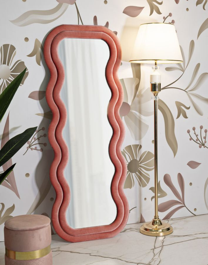 Pink Velvet Romantic Wall Mirror with Sinuous Shape