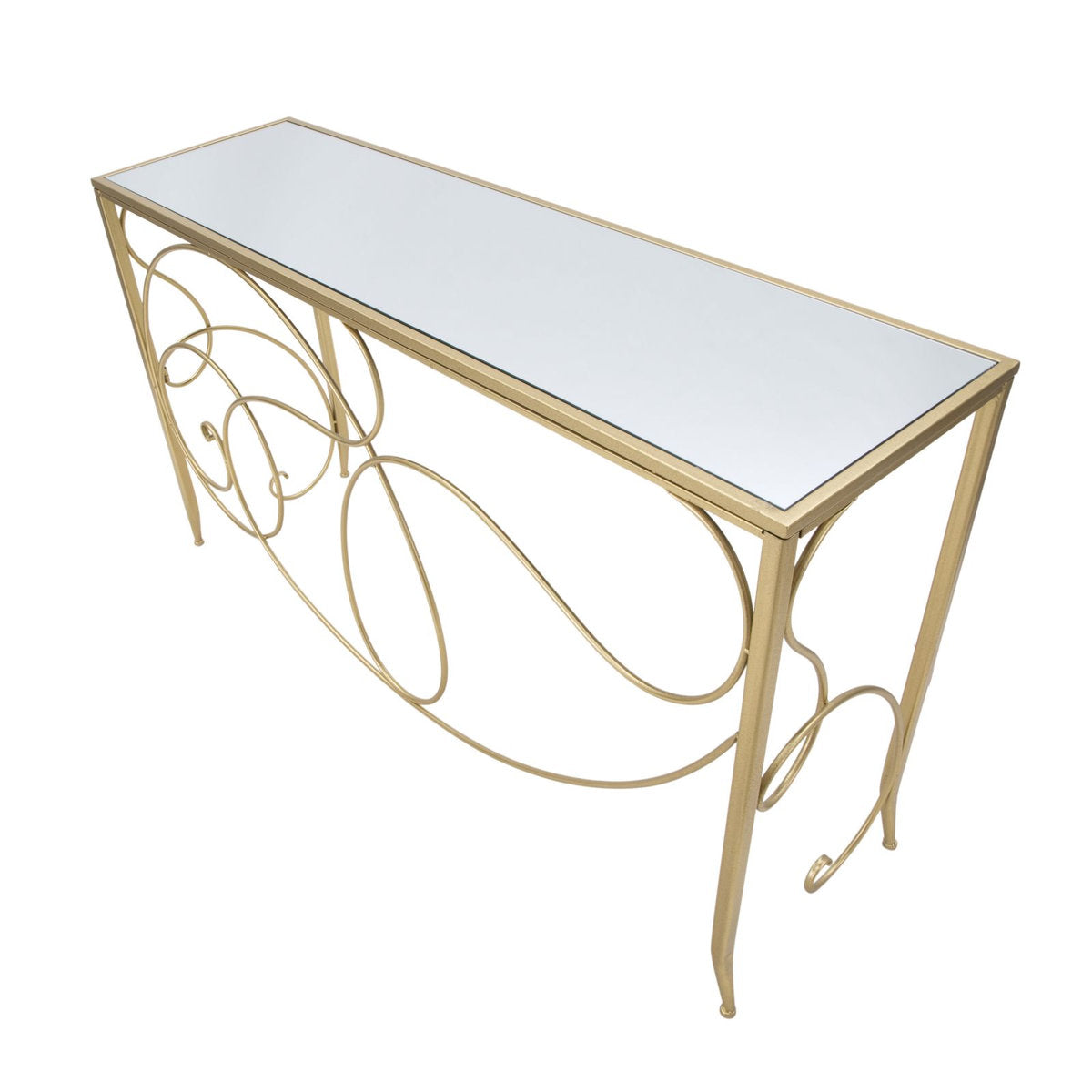 Rectangular Console in Gilded Metal with Mirrored Top – Sinuous Lines