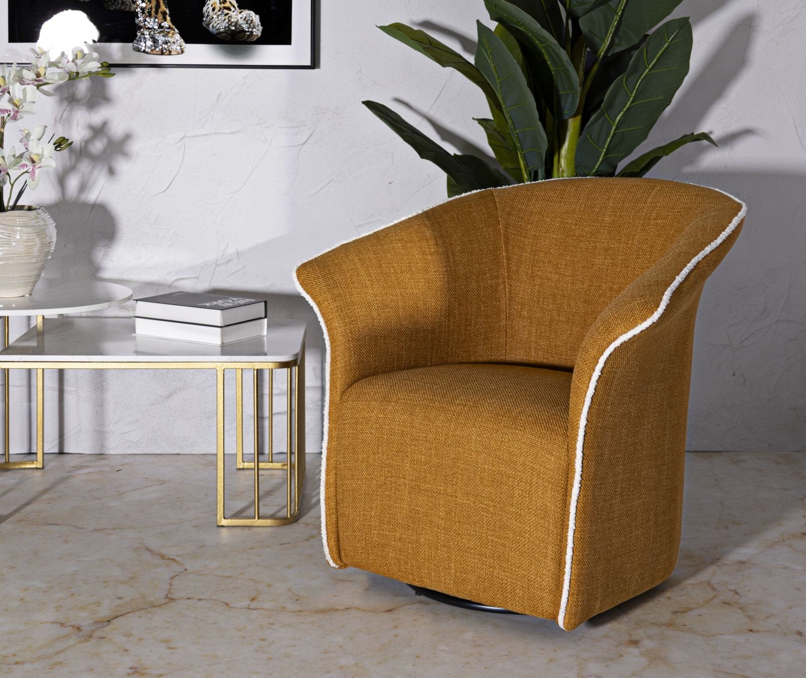 Siena Senape Swivel Armchair – Stylish Mustard Upholstery