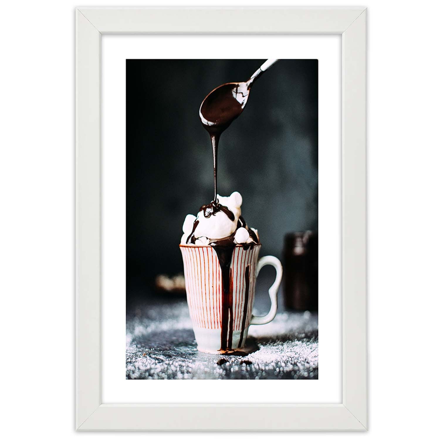 Picture in white frame, Coffee with marshmallows