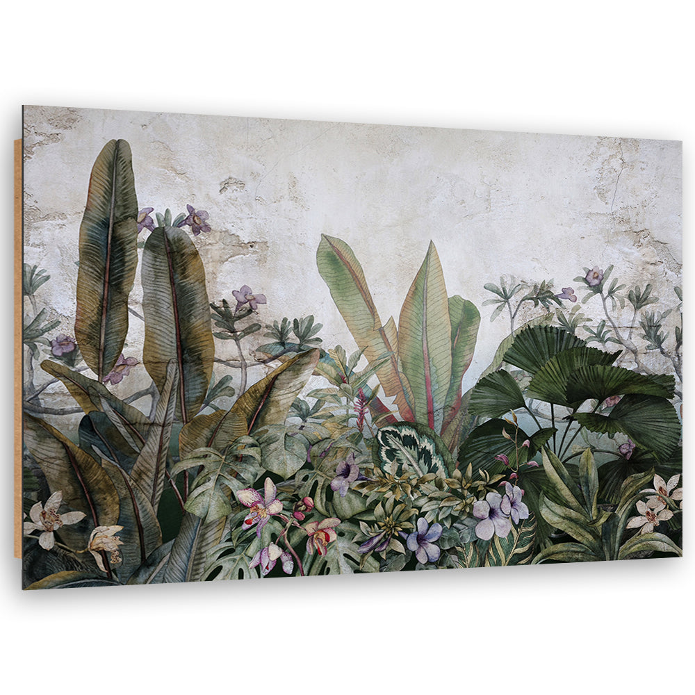 Deco panel print, Egozotic leaves on concrete