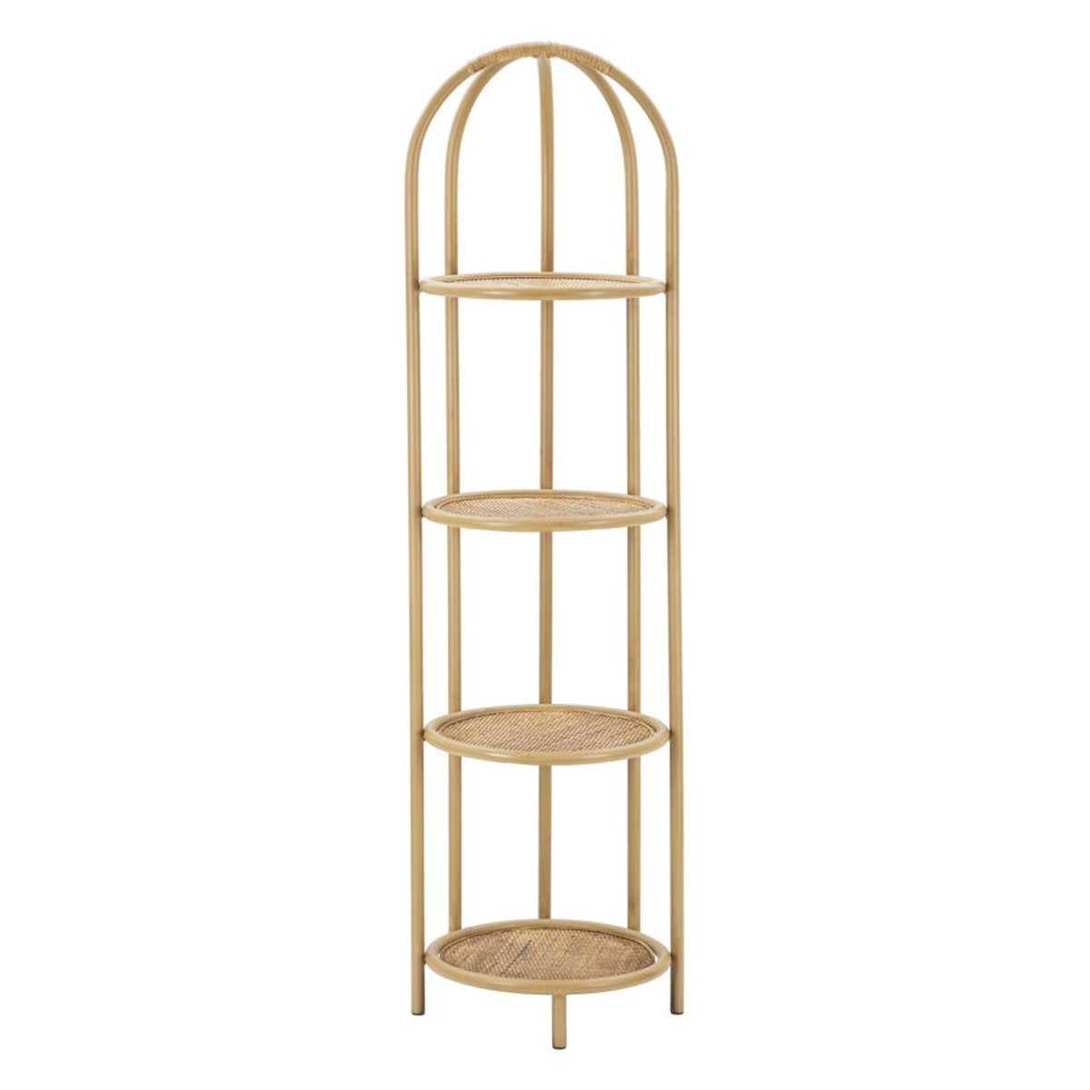 Round Metal Bookcase with Rattan Finish & 4 Shelves