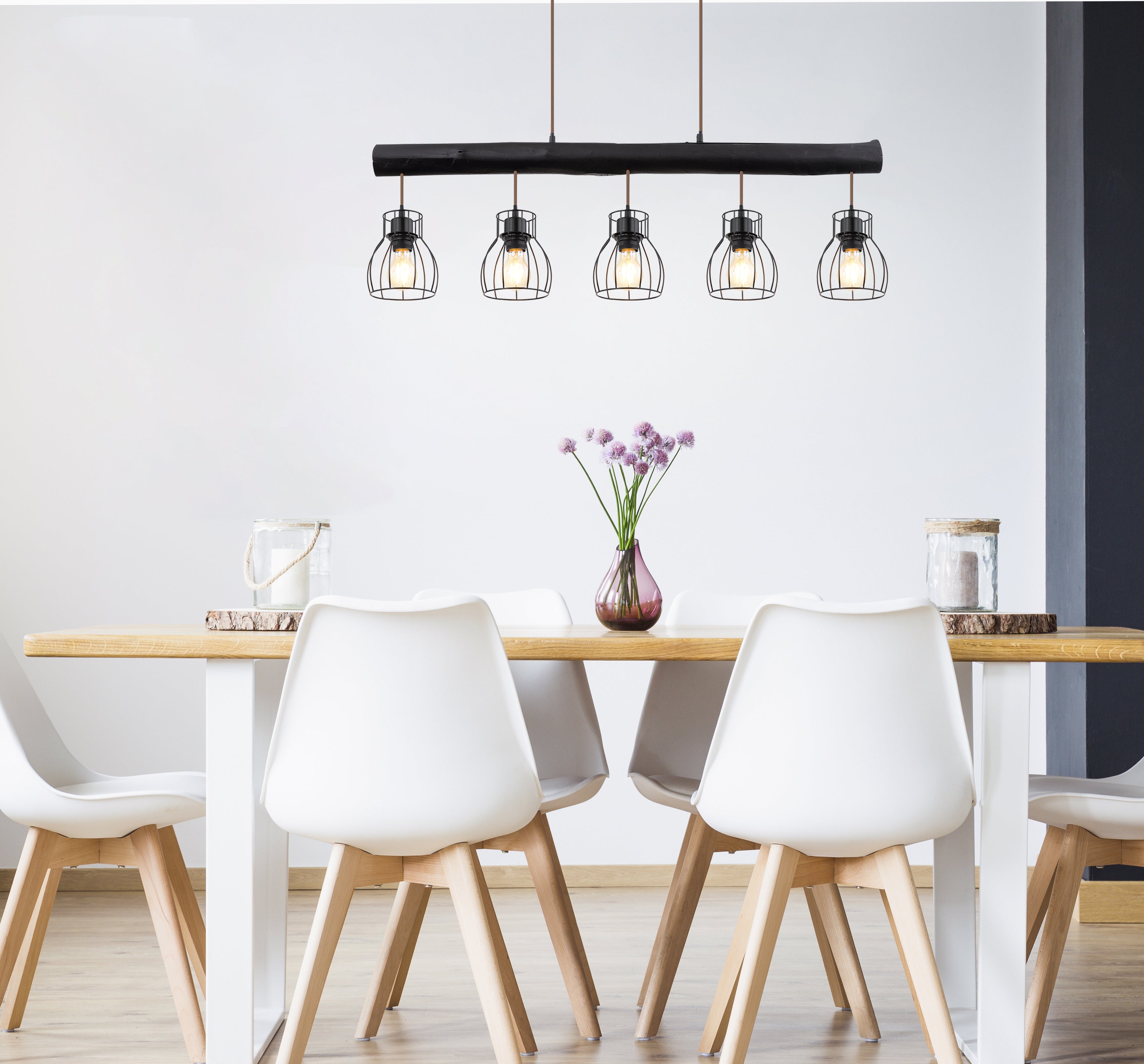 Linear pendant ceiling lamp Globo Lighting Mina metal black E27 5L