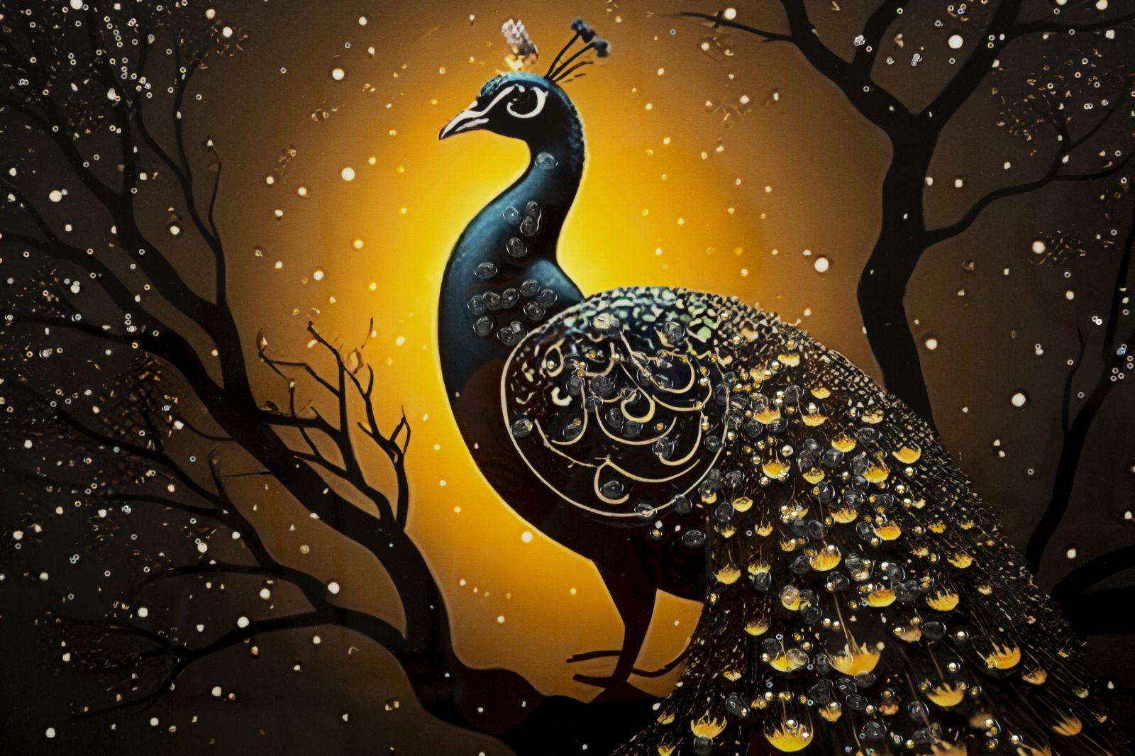 Mauro Ferretti picture printing on canvas peacock laquared with frame fir wood