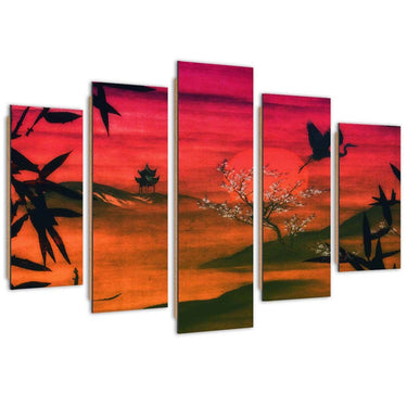Five piece picture deco panel, Japan bathed in sunlight