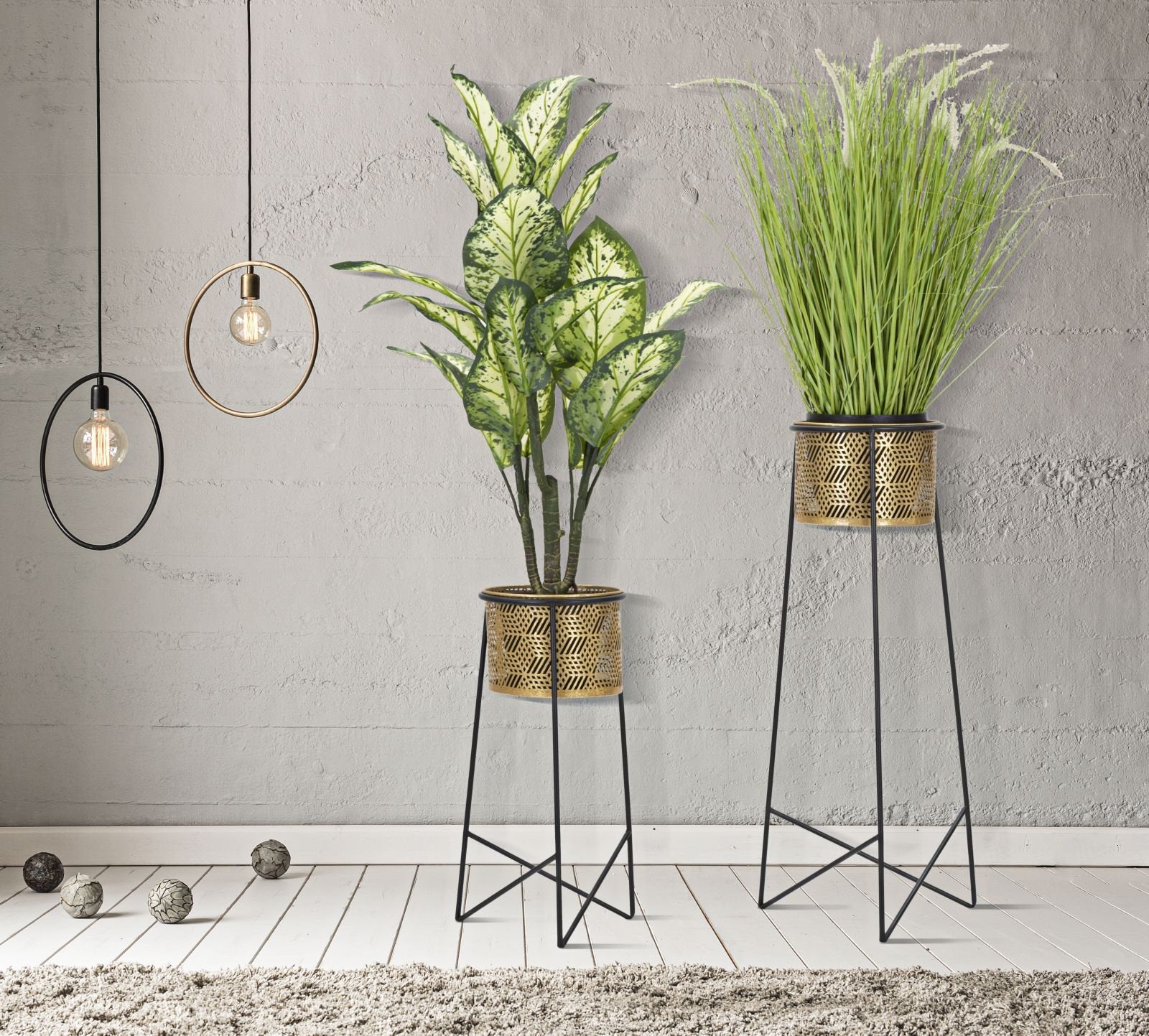 Pair of Glam Flowerpot Holders – Carved Golden Design