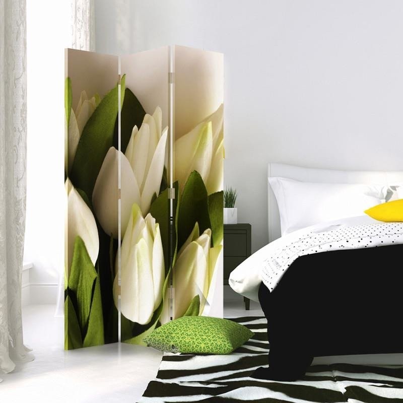 Room divider Double-sided rotatable, Fresh white tulips