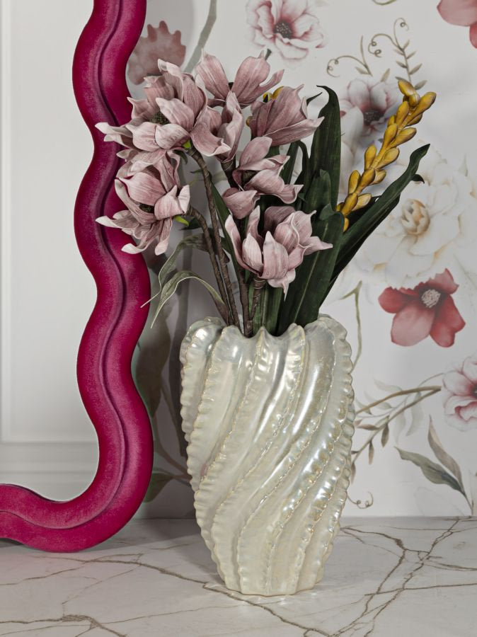 Jarrón fino perlado con relieve texturizado: decoración moderna y elegante