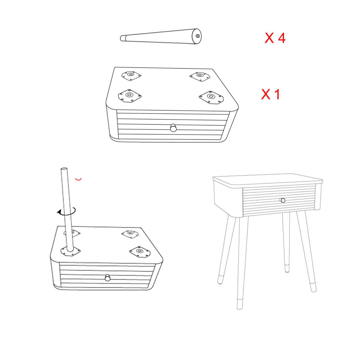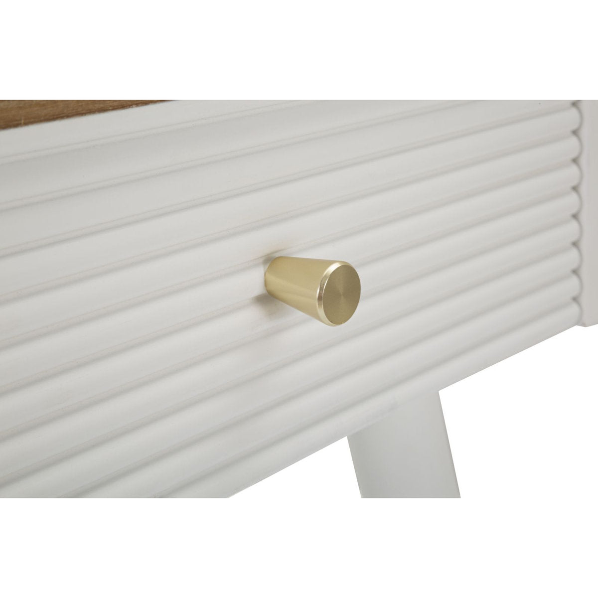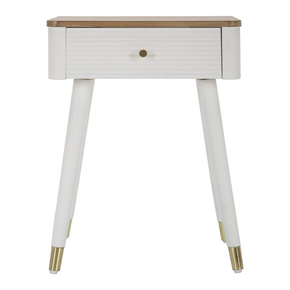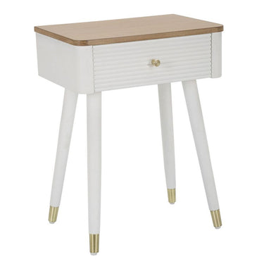 Mesita de noche de madera blanca con cajón y tablero marrón