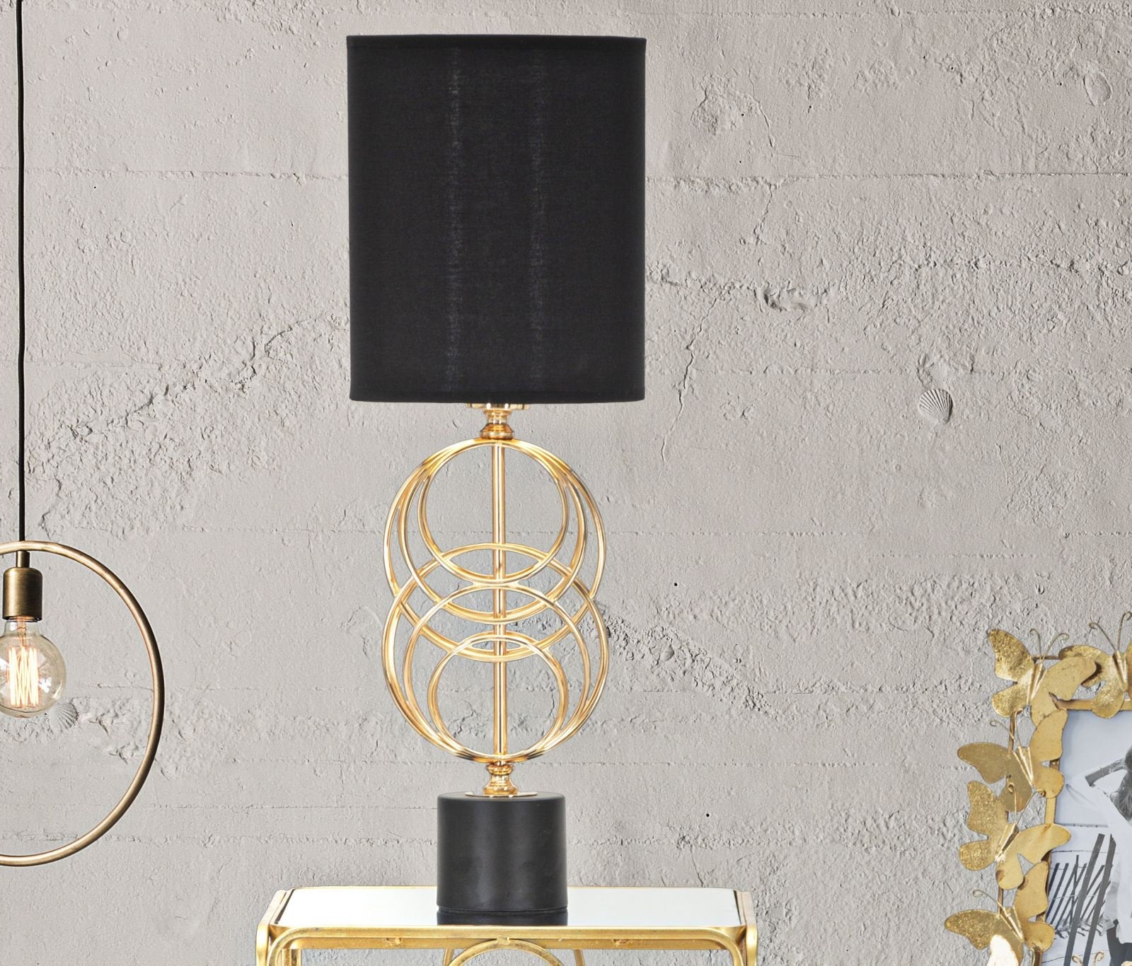 Golden Glam Table Lamp with Black Shade – Concentric Detail