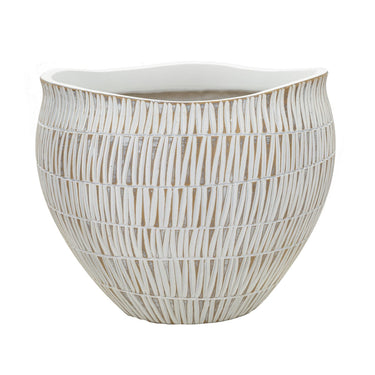Maceta de resina tallada con líneas geométricas: maceta decorativa moderna