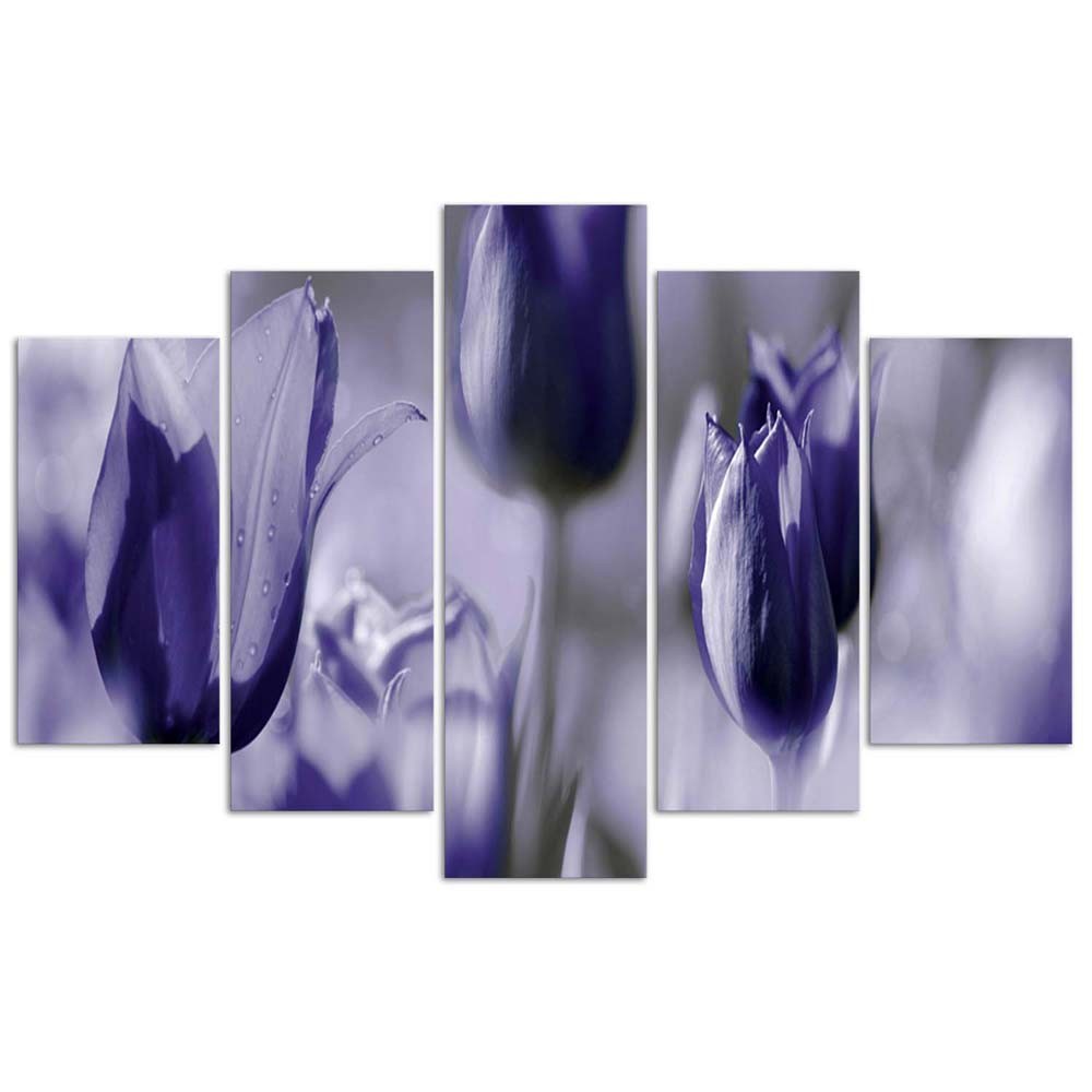 Five piece picture canvas print, Purple tulips in a meadow