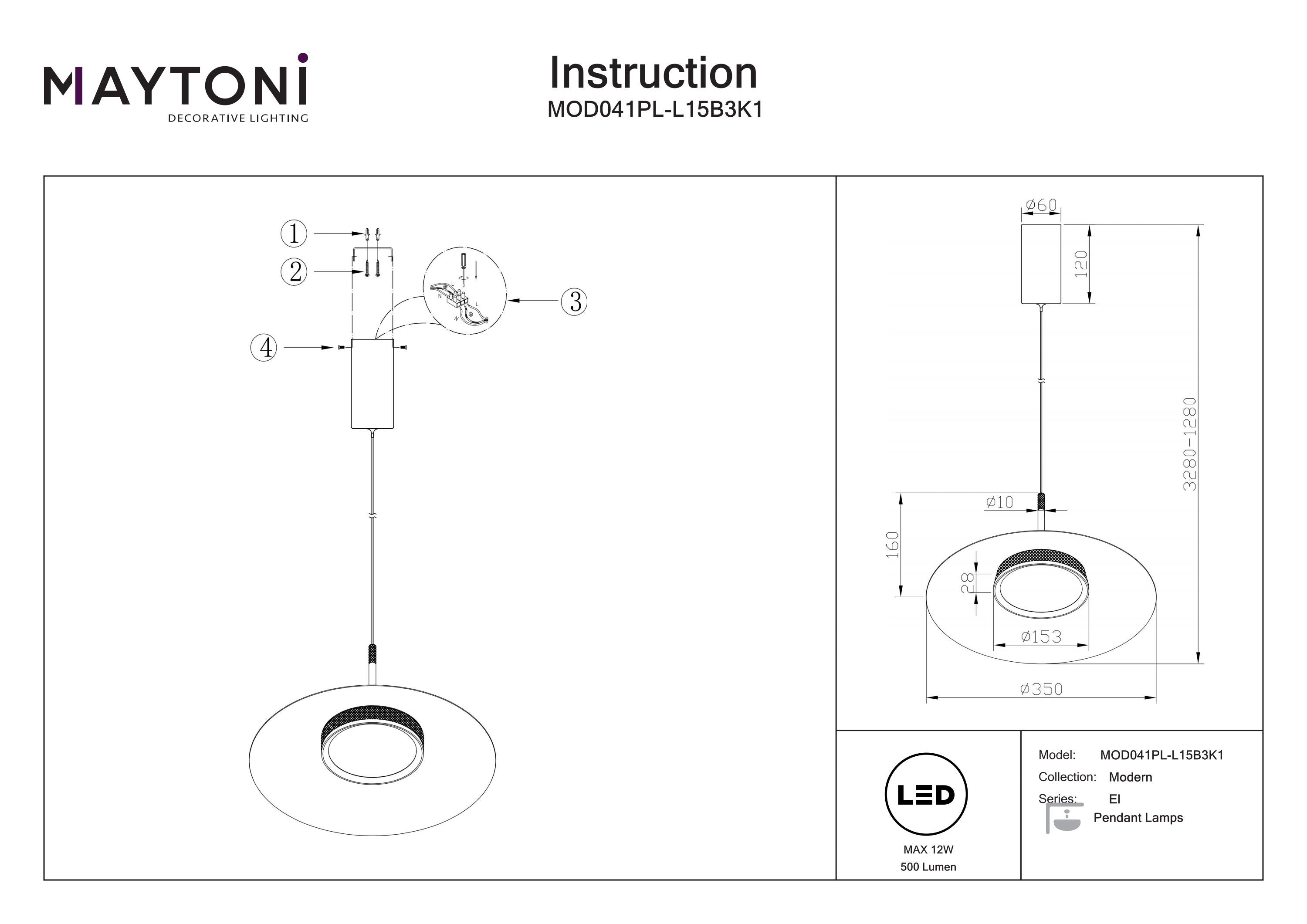 Maytoni El 1L pendant lamp, black LED D 35cm