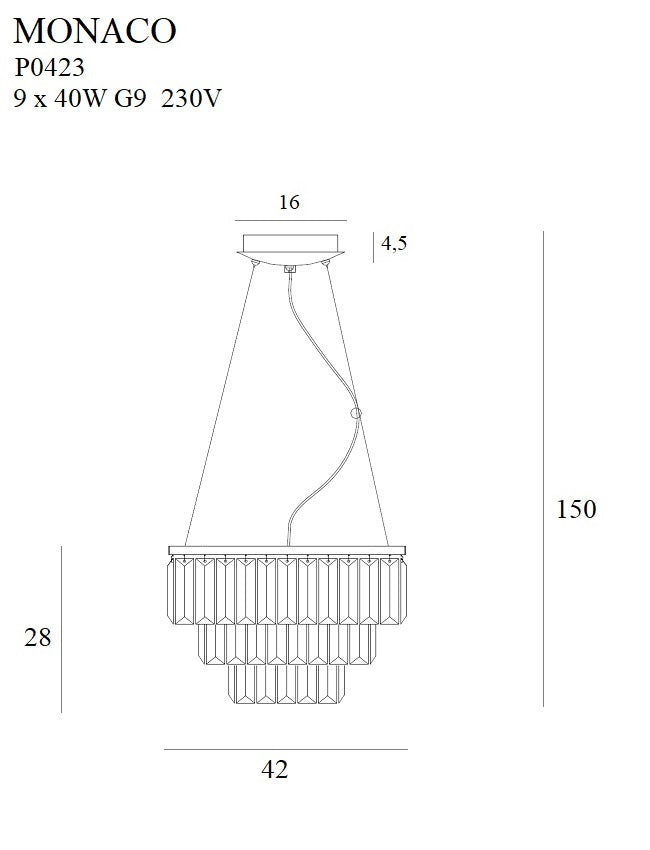 Lámpara de araña Maxlight Monaco 9L de cristal de 42 cm de diámetro