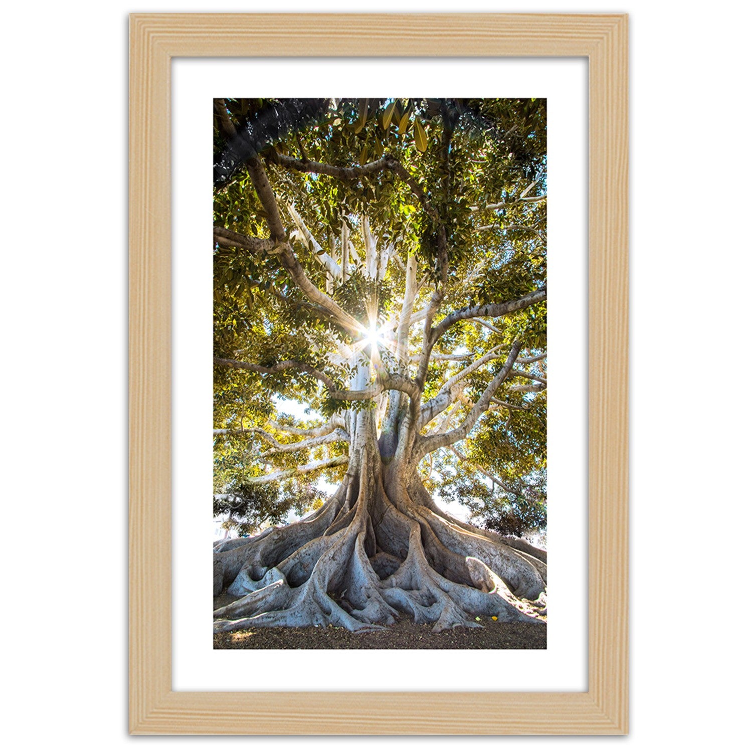 Picture in natural frame, Large exotic tree