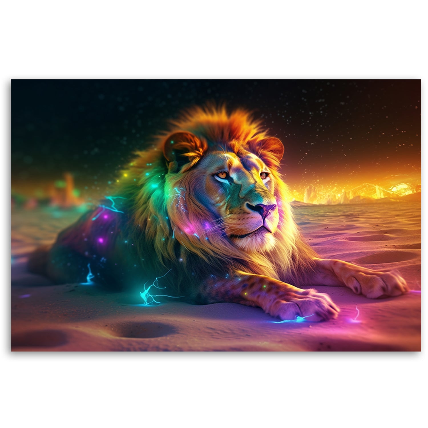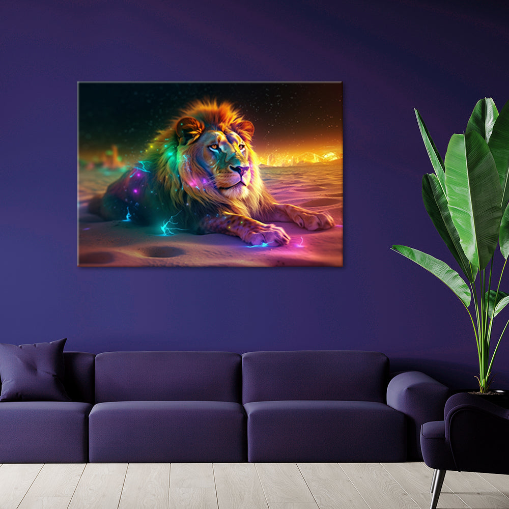 Deco panel print, Animal AI Lion Abstraction Neon