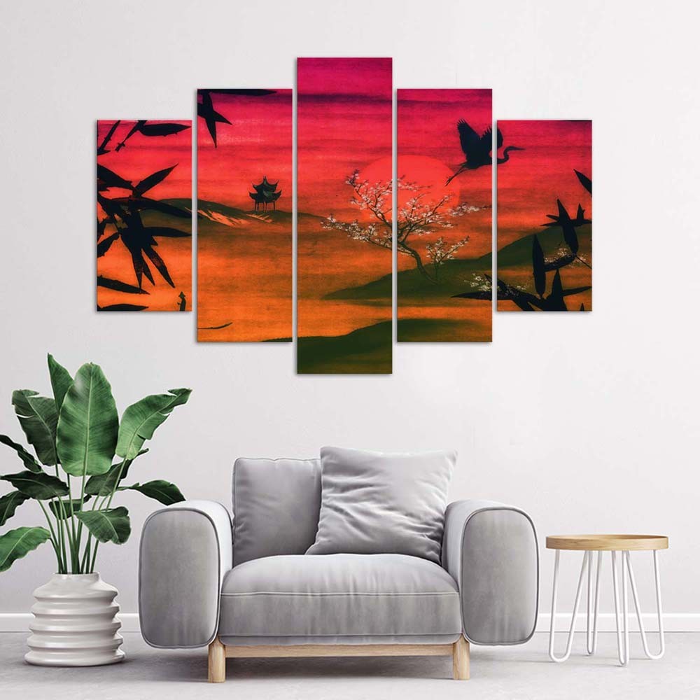 Five piece picture canvas print, Japan bathed in sunlight