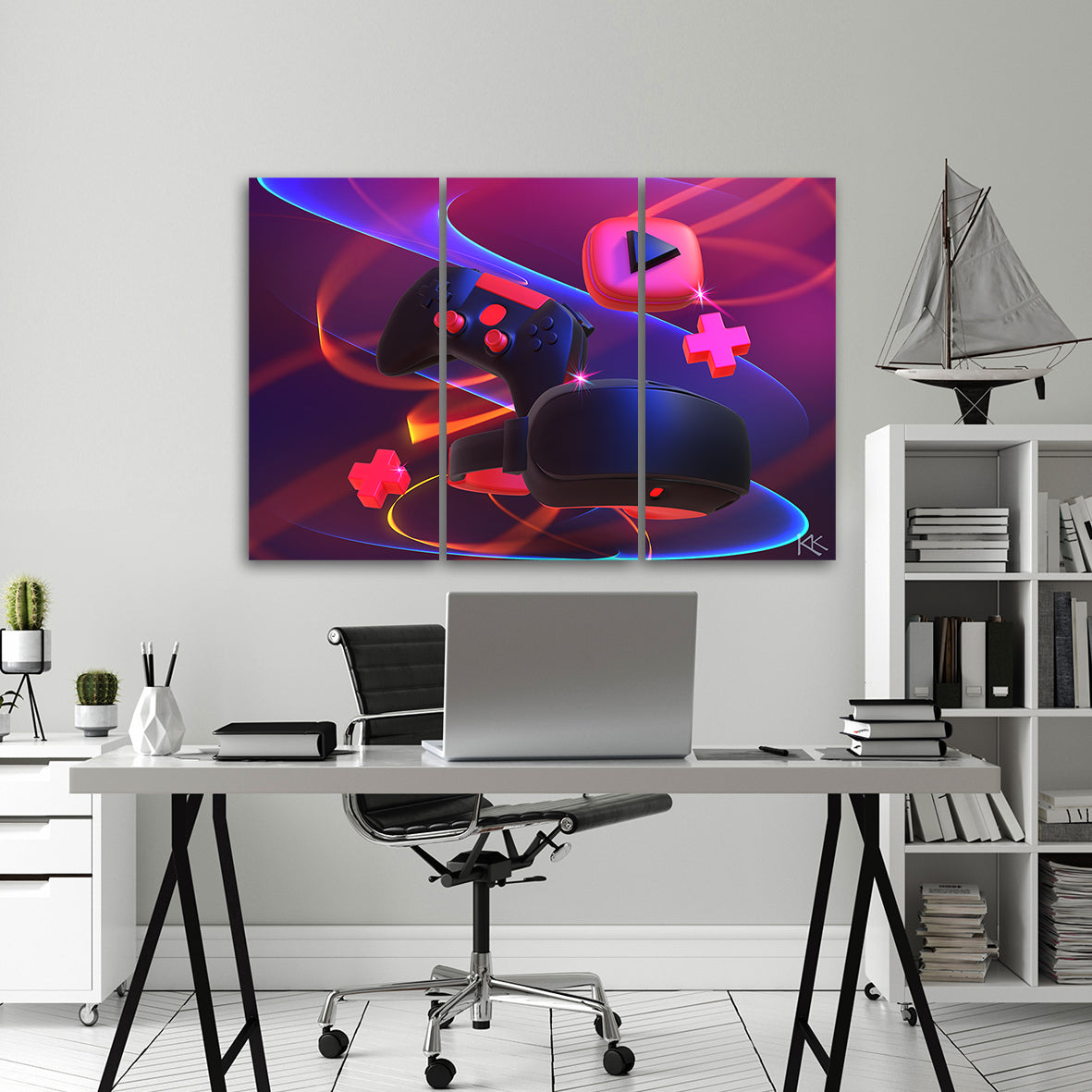 Three piece picture canvas print, Gaming kit controller