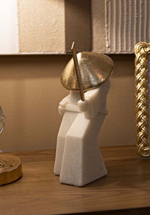 Samurai in Defense Stance with Golden Details – Collector's Sculpture