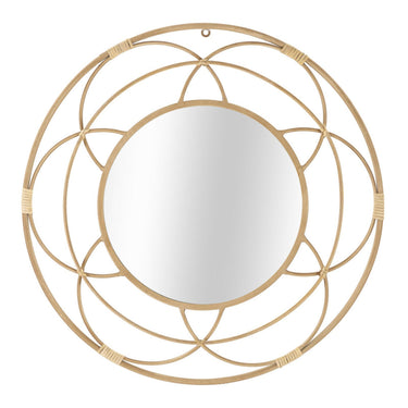 Specchio da parete rotondo con cornice geometrica a motivo floreale in rattan