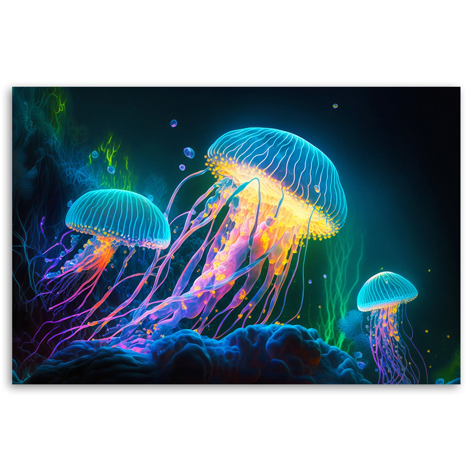 Canvas print, Neon jellyfish underwater