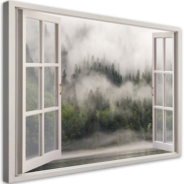Canvas print, Window Foggy Forest Lake