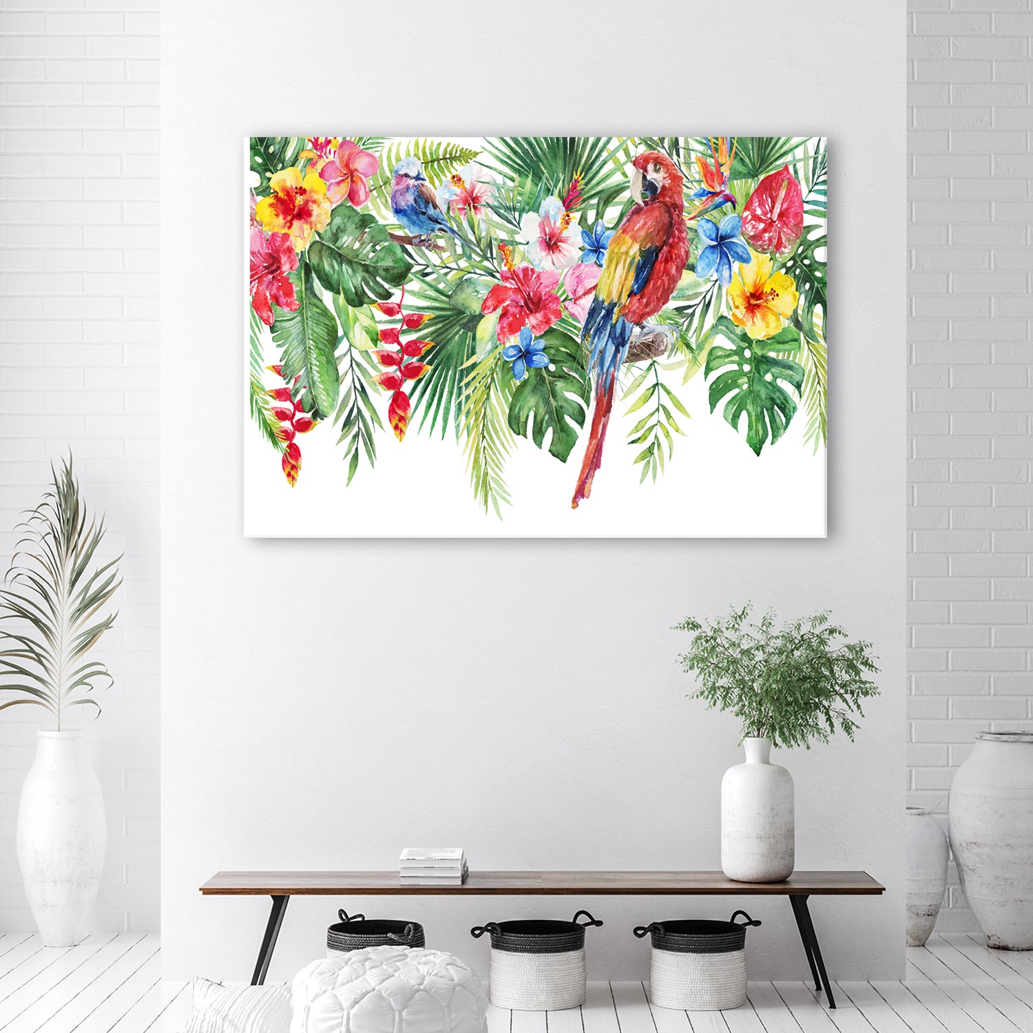 Deco panel print, Leaves flowers and parrot