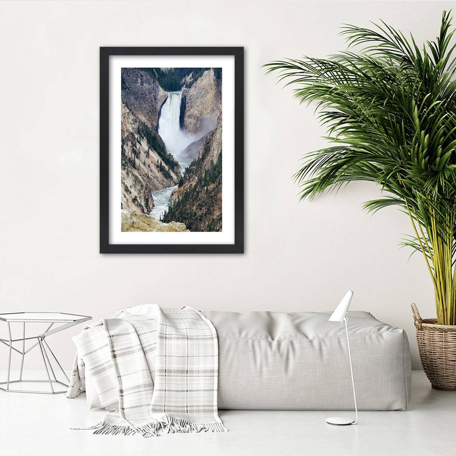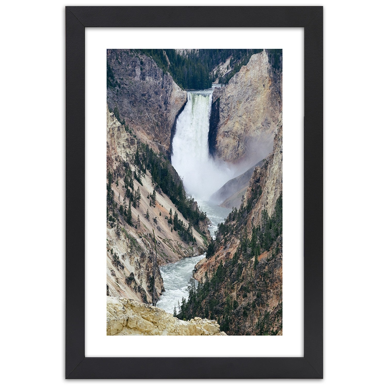 Picture in black frame, Great waterfall in the mountains