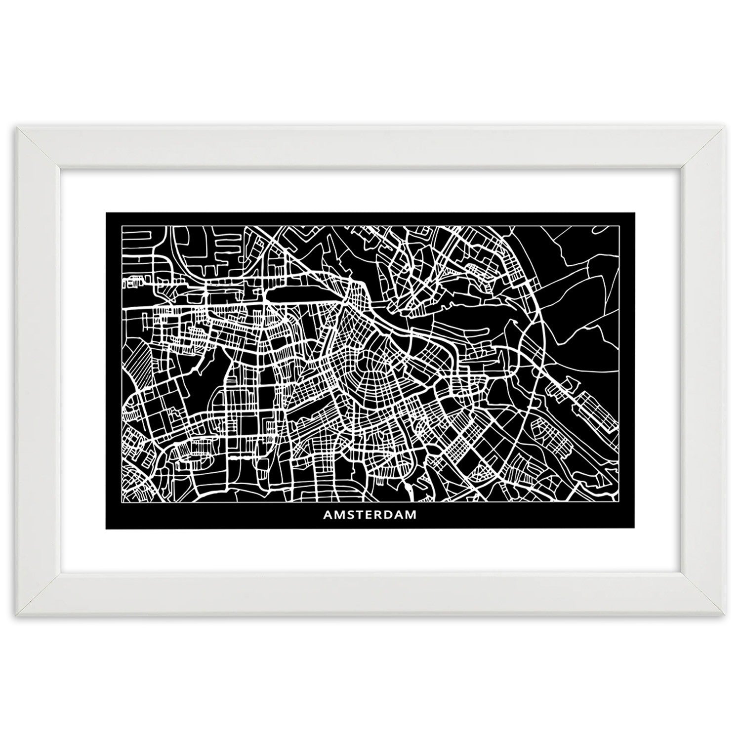 Picture in white frame, City plan amsterdam