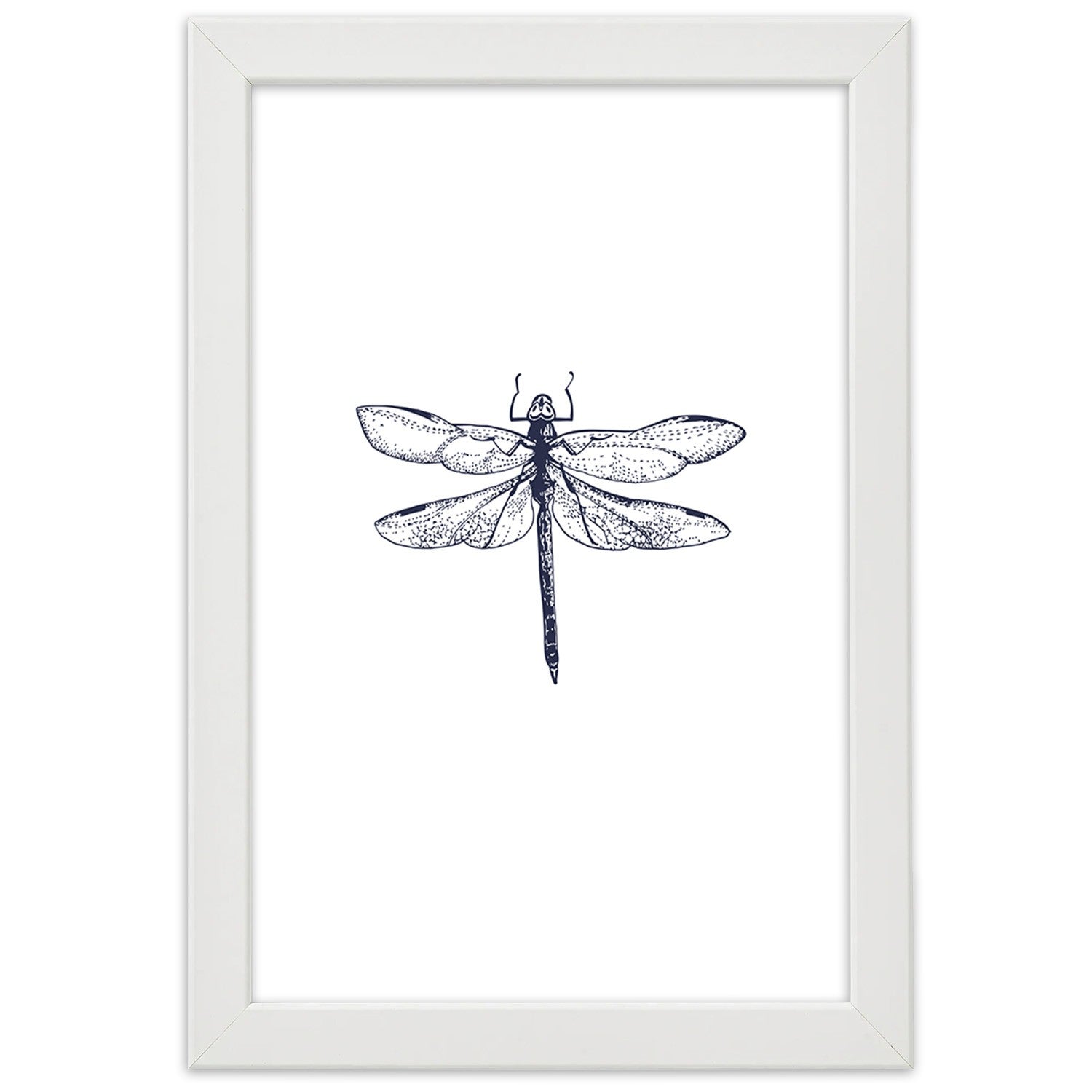 Picture in white frame, Dragonfly drawn