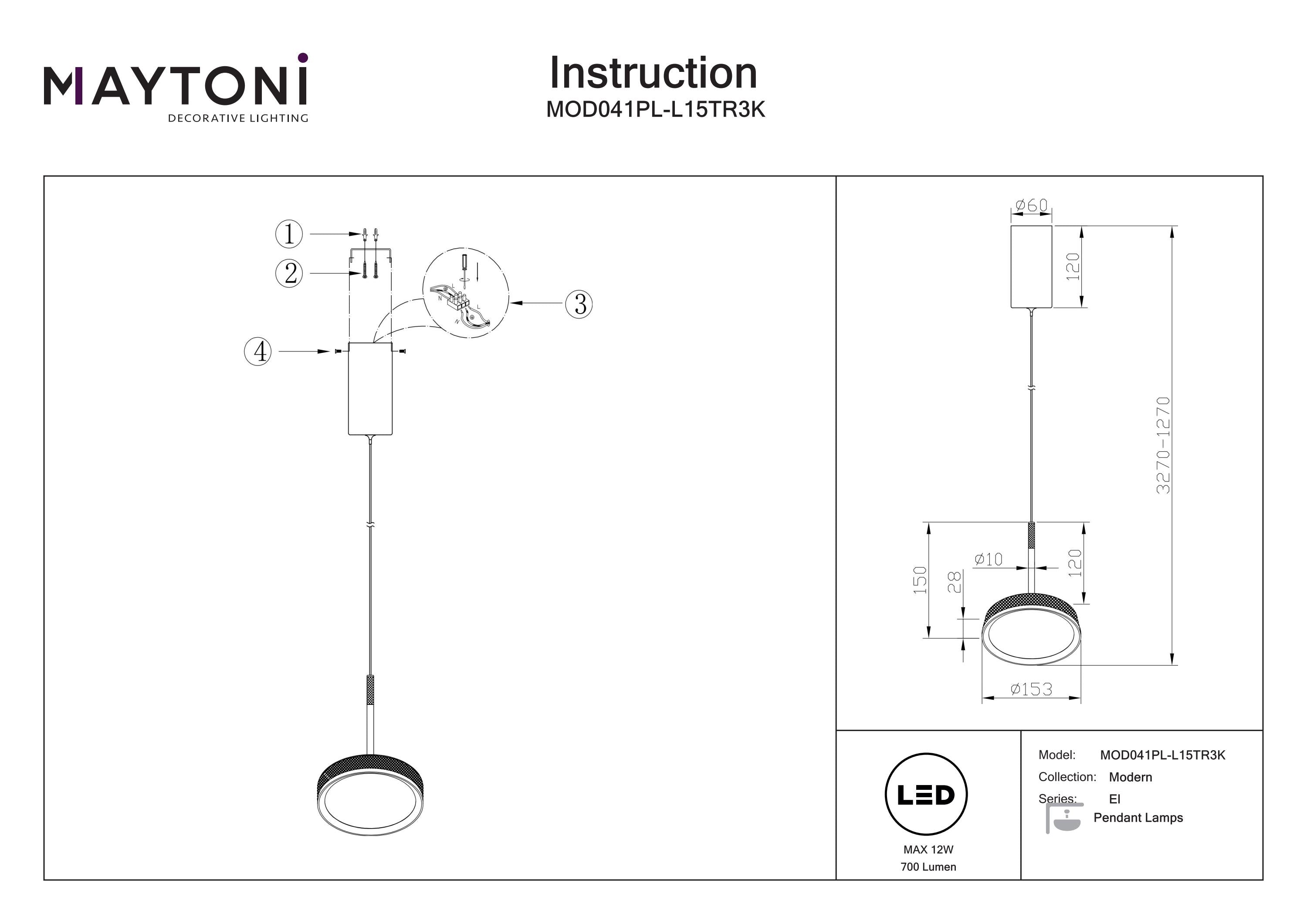 Maytoni El 1L pendant lamp, black LED D 15.3cm