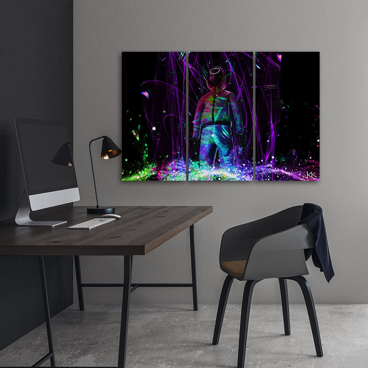Three piece picture canvas print, Neon player