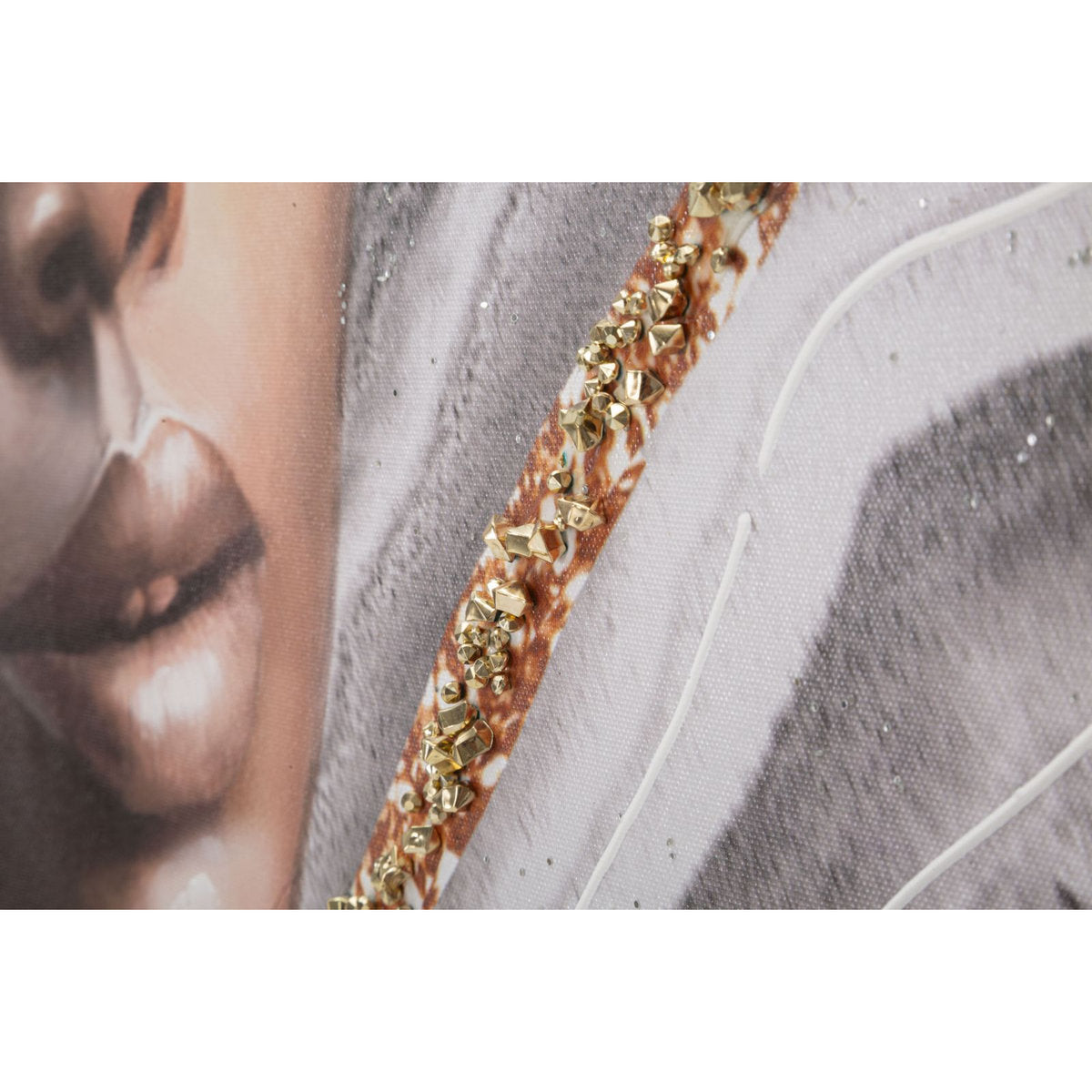 Floral Headdress Woman Canvas with Elegant Fabric Accents