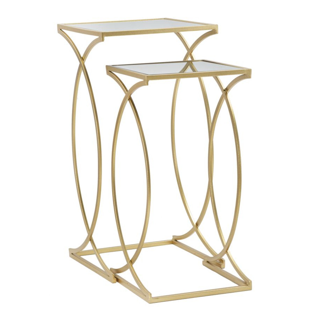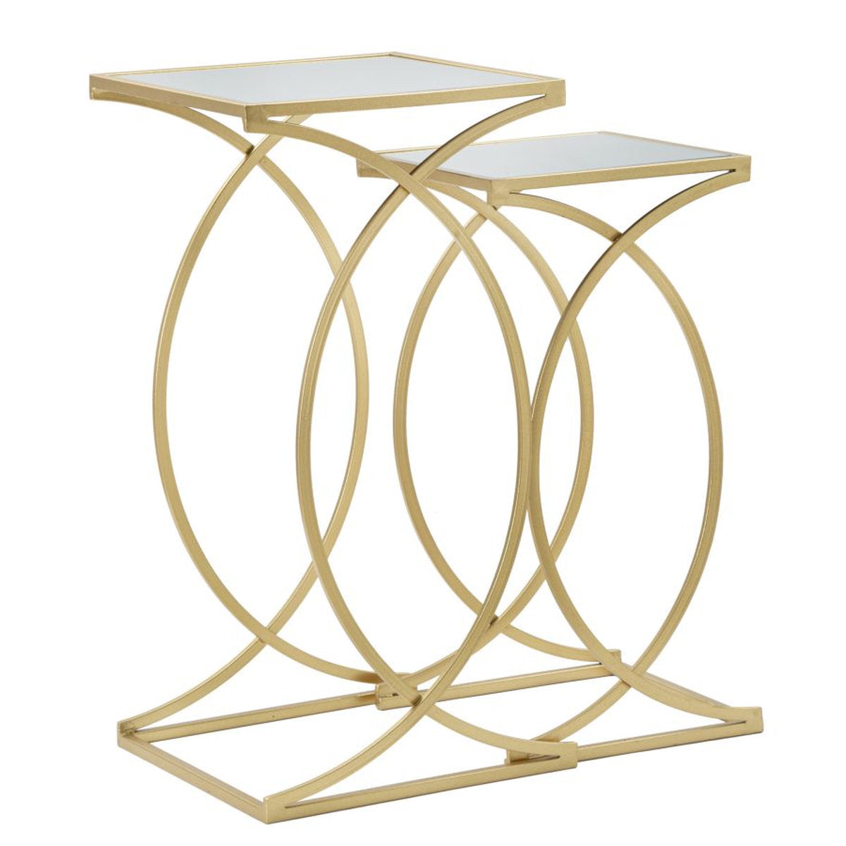 Pair of Golden Metal Coffee Tables with Mirrored Top – Sinuous Design