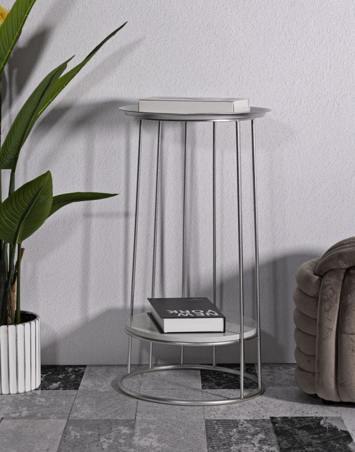 Silver Metal Coffee Table with Tangle-Style Base & Marble Top